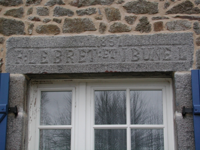 Détail : parcelle D3 1347, linteau de porte gravé : '1851 / F:LEBRET:ET:J:BUNEL'Immatriculation