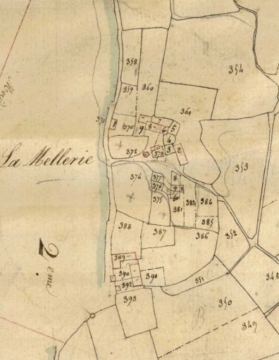 Le hameau, côté est de la route, sur le cadastre de 1826Immatriculation