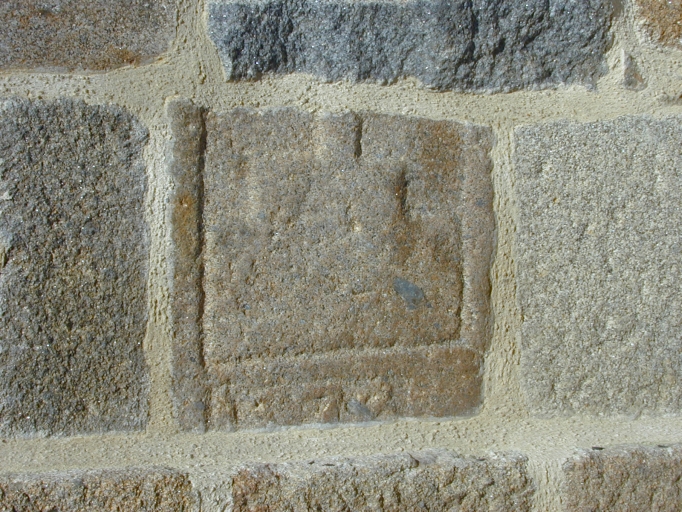 Sacristie, pierre tombale remployée dans le mur oriental : détailImmatriculation