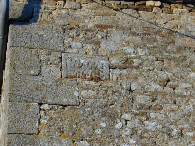 Le logis, pierre épigraphique enchâssée dans la façade antérieure : détailImmatriculation