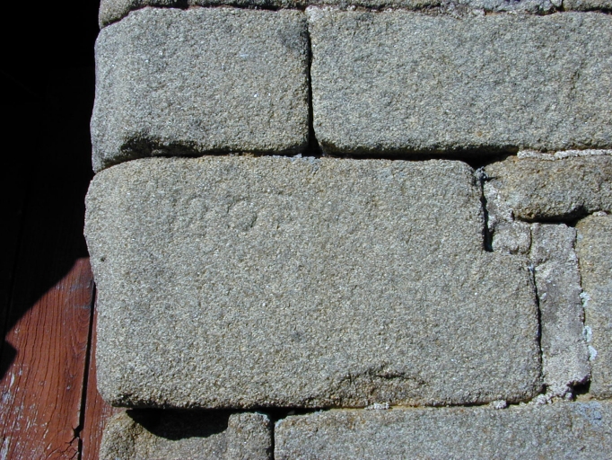 Logis ouest, date gravée sur le montant de la porte : détailImmatriculation