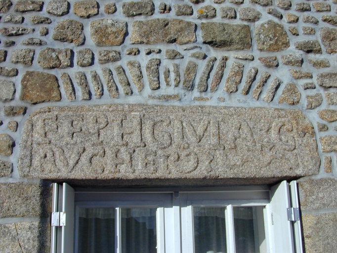 Façade sur cour, linteau épigraphique de la porte est : détailImmatriculation