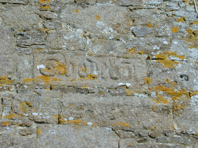 Logis, façade antérieure, pierre gravée d'inscription : détailImmatriculation