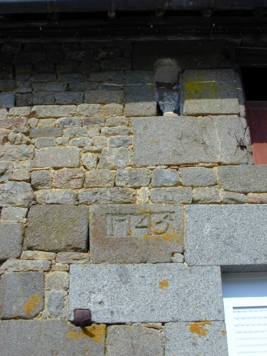 Logis, façade antérieure, date gravée près de la niche à statue : détailImmatriculation