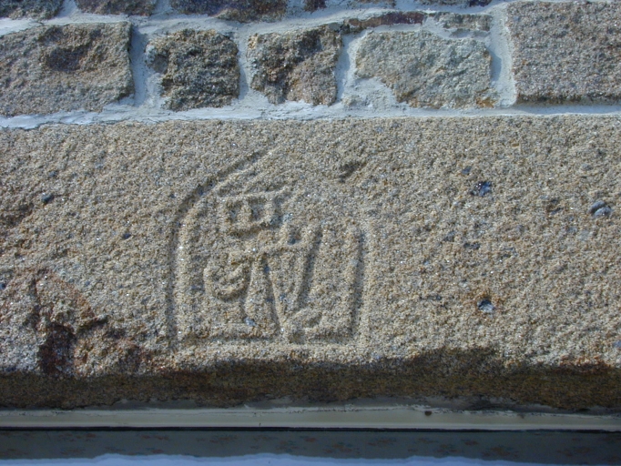 Linteau de la porte gravé d'un blason illisible : détailImmatriculation