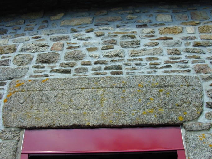 Porte d'entrée, linteau gravé d'inscripions : détailImmatriculation