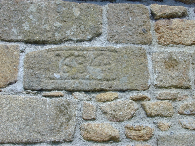 L'ancien logis, pierre gravée d'une date enchâssée dans la façade : détailImmatriculation