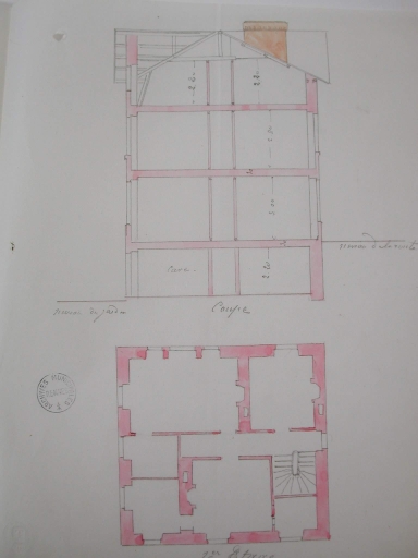 Plan de l'étage et coupe, dessin, par J.-M. Huchet, 1862 (A. C. Rennes)Immatriculation