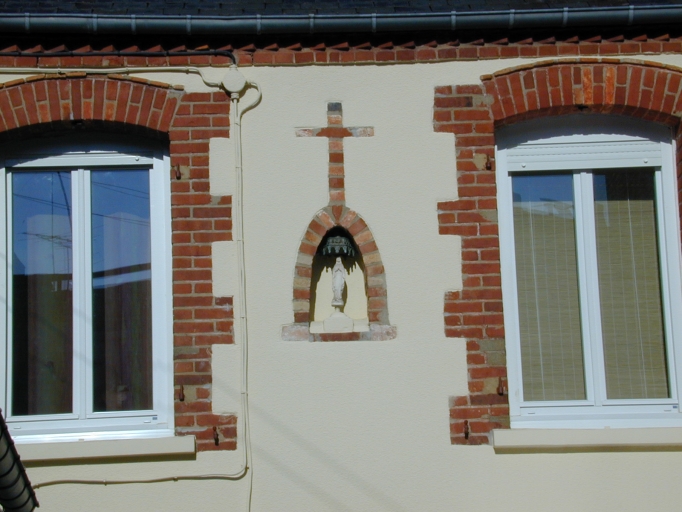 Détail de la façade, niche avec statuette de la viergeImmatriculation
