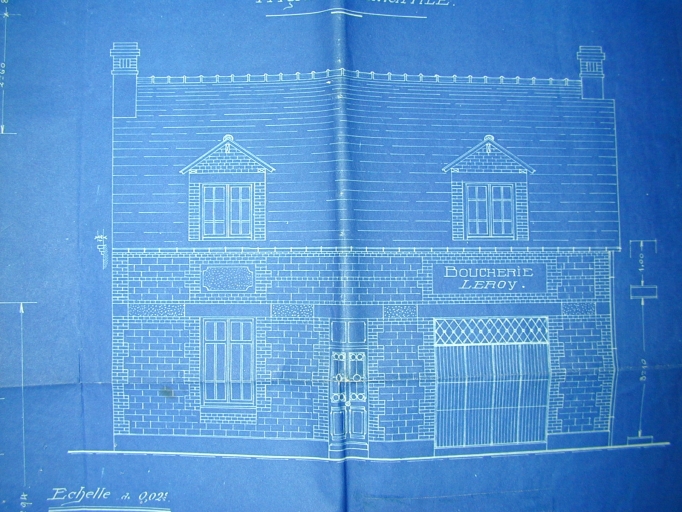 Façade principale de la Boucherie Leroy, plan 1922Immatriculation