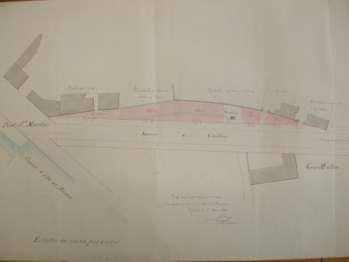 Plan parcellaire des terrains vagues situés sur le bord et à gauche de l'avenue du Cimetière de Rennes, pour servir au projet d'aliénation des dits terrains, 1860 (A. C. Rennes)Immatriculation