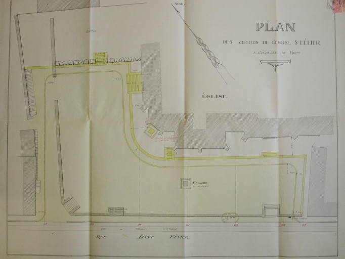 Plan des abords de l'église Saint-Hélier, dessin de 1936Immatriculation