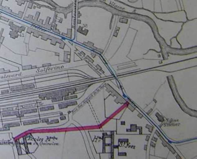 Ancien chemin de Quineleu au faubourg Saint-Hélier, puis rue des Ateliers, actuellement rue Pierre-Martin (Rennes),