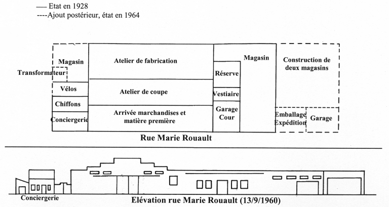 Plan de l'usine de confection Ariès (1964).Immatriculation
