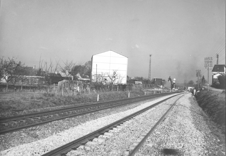 Entrepôt industriel situé le long du chemin de fer ; il abrite les cuves (coll. privée).Immatriculation