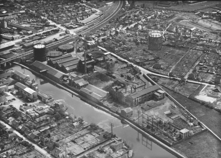 Vue aérienne de l'usine à gaz (vers 1949).Immatriculation
