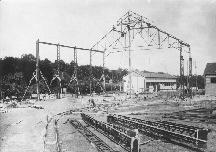 Photographie ancienne : construction de la centrale électrique en 1923, à Soulvache (Loire-Atlantique).Immatriculation