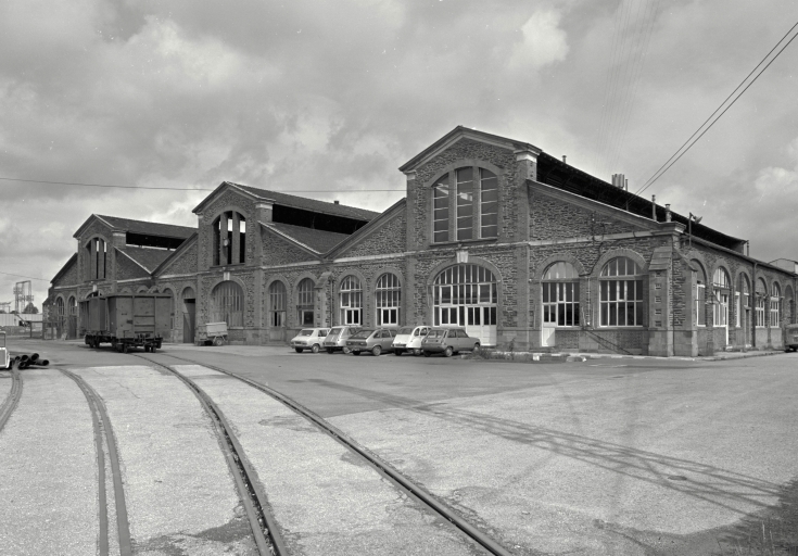 Halles centrales édifiées en 1884 ; elles abritaient les fours de distillation, vue générale sud.Immatriculation