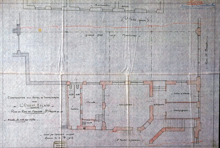 Hôtel et imprimerie Ouest-Eclair : plan du rez-de-chaussée (10 septembre 1912).Immatriculation
