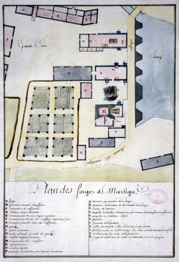 Planche extraite du manuscrit De Robien : plan des forges de Martigné (1735).Immatriculation