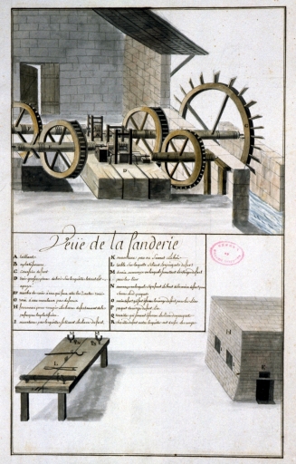 Planche extraite du manuscrit De Robien : vue de la fenderie (1735).Immatriculation