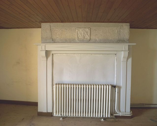 Etage, cheminée avec blason.Immatriculation