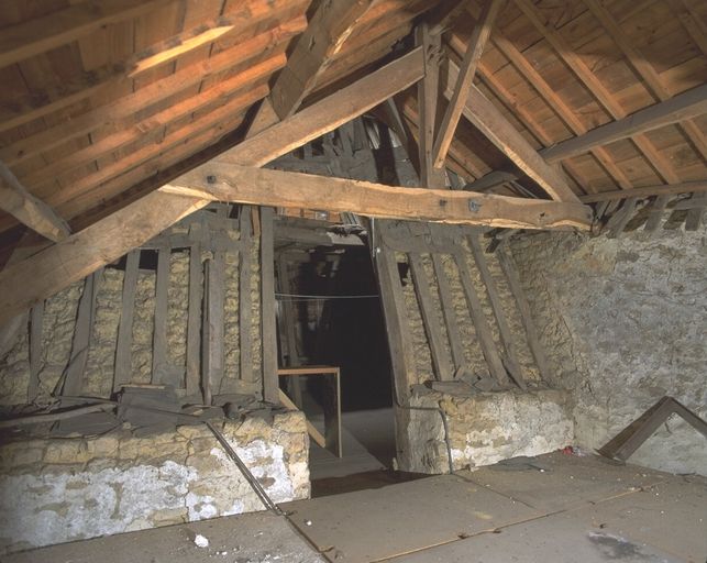 Pavillon, charpente, détail des chevrons.Immatriculation