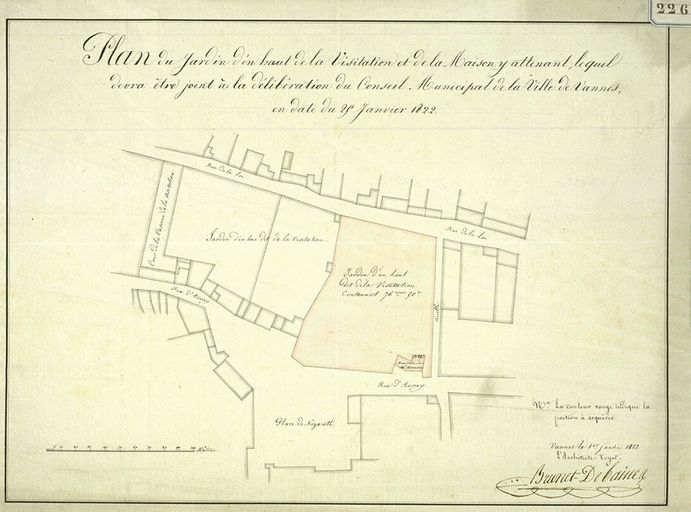 Plan du jardin d'en haut de la Visitation et de la maison y attenant, par Philippe Brunet-Debaines, 1822. AD Morbihan 1Fi 226.Immatriculation