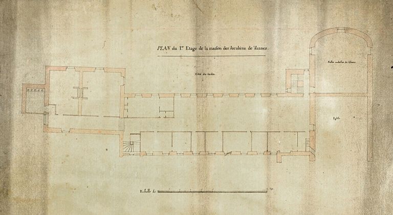 Plan du premier étage de la maison des Jacobins, 1792. AD Morbihan 1Fi279/2.Immatriculation