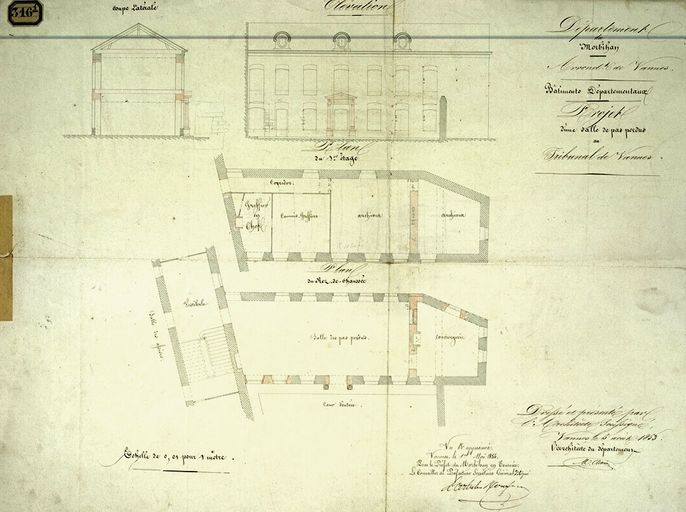 Projet d'une salle de pas perdus au tribunal de commerce par Marius Charier, 1853. AD Morbihan 1Fi 316/1.Immatriculation