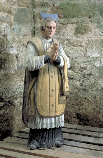 Statue (petite nature) : saint Bieuzy, place Ernest Lemoine (Bieuzy fusionnée en Pluméliau-Bieuzy en 2019),