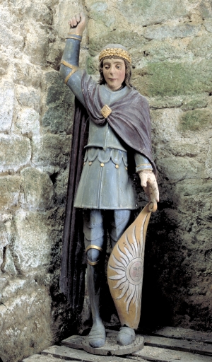 Statue (grandeur nature) : saint Michel, place Ernest Lemoine (Bieuzy fusionnée en Pluméliau-Bieuzy en 2019),