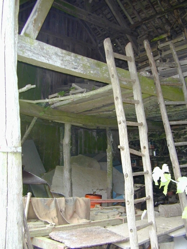 Grange-logement, cloison en bois séparant le logement de la remise.Immatriculation
