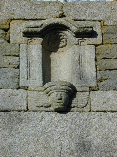 Logis, élévation sud-est, niche à Vierge.Immatriculation