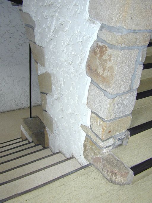 Escalier, vue du mur noyau prise du 1er étage vers le palier inférieur.Immatriculation