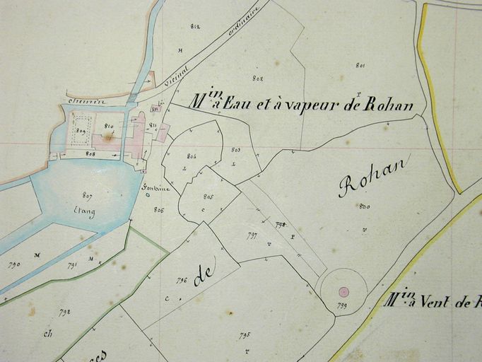 Plan cadastral 1844, section I. Moulin à eau et à vent de Rohan. AD Morbihan 3P593.Immatriculation