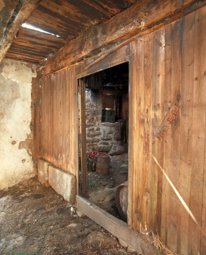 Melrand, Kergair, logis-étable, cloison de séparation en planchesImmatriculation