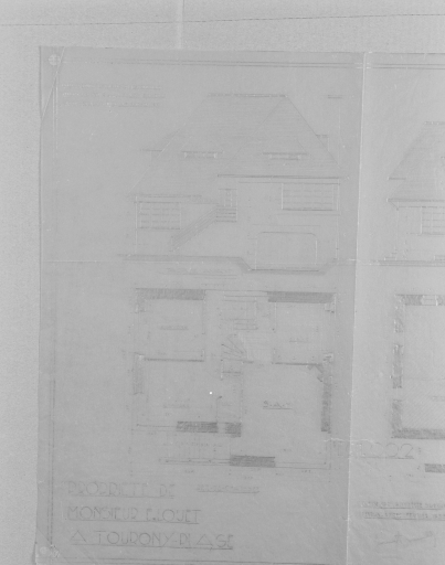 Façade avant, rez-de-chaussée, crayon sur calque, par James Bouillé, architecte, février 1933.
