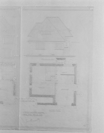 Façade est, sous-sol, crayon sur calque, par James Bouillé, architecte, février 1933.Immatriculation