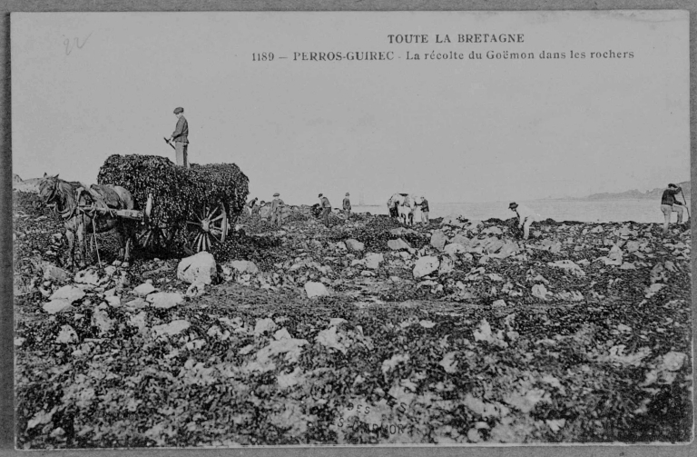 Perros-Guirrec, la récolte du goémon dans les rochers, carte postale, s.n., 1er quart 20e siècle.Immatriculation