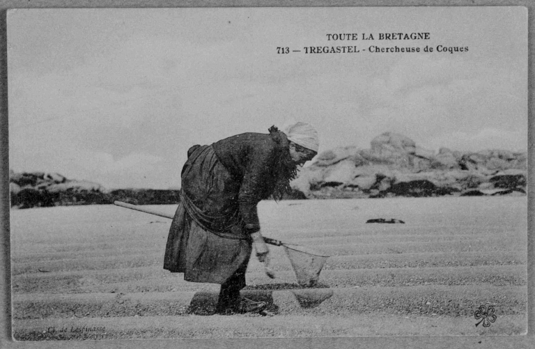 Trégastel, chercheuse de coques, carte postale, s.n., 1er quart 20e siècle.Immatriculation