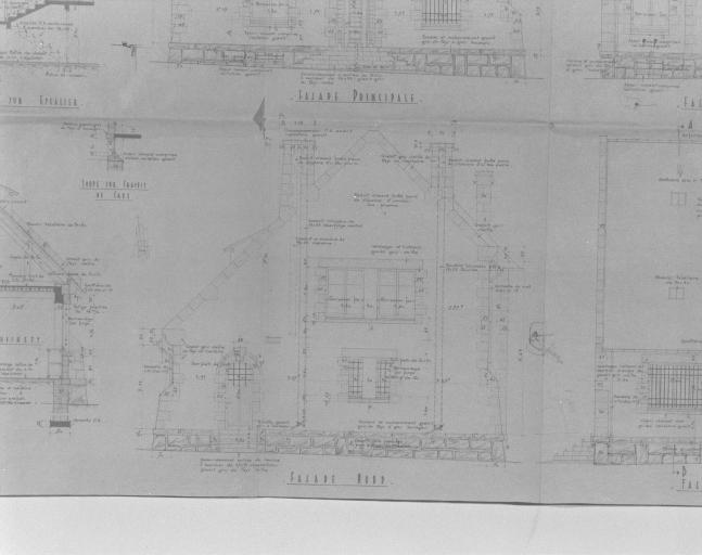 Construction d'un bureau de poste, façade nord, par Pierre-Jack Laloy, 10 octobre 1950.Immatriculation
