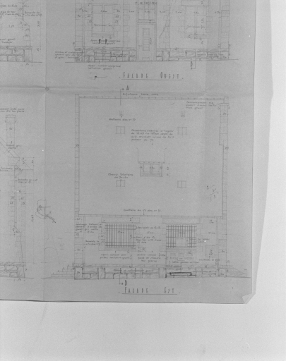 Construction d'un bureau de poste, façade est, par Pierre-Jack Laloy, 10 octobre 1950.Immatriculation