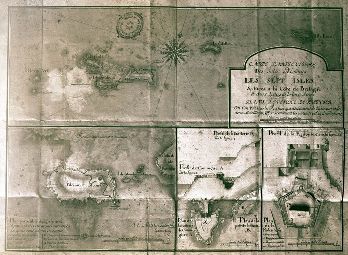 Plan du projet de batteries et redoute de l'île aux Moines par Garangeau daté du 15 juillet 1718Immatriculation