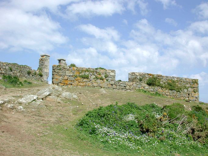 Ouvrages d'entrée du fort : fossé, enceinte en redan, porte, Ile aux Moines, fort, les Sept-Iles (Perros-Guirec),