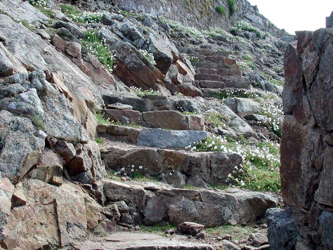 Vue de l'escalier reliant la batterie de la Théroute à la redoute de l'île aux MoinesImmatriculation