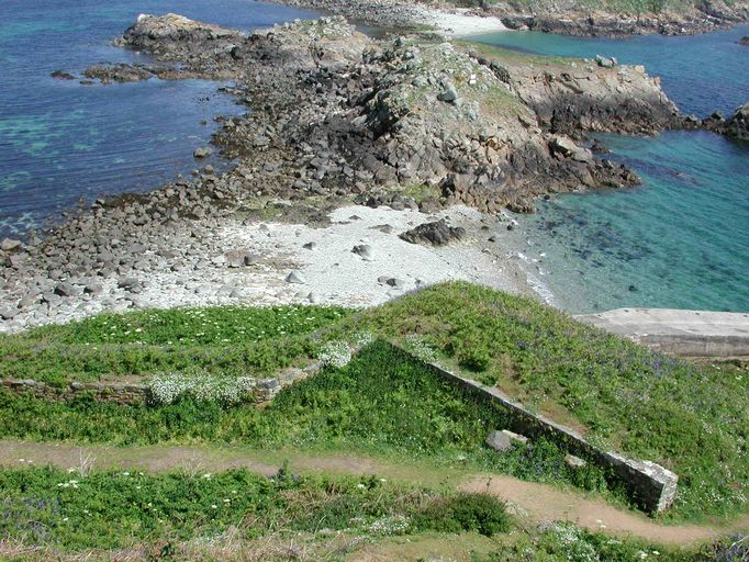 Chemin de ronde Nord reliant la grande batterie de Cosmoguer, la caserne et le fort, Ile aux Moines, les Sept-Iles (Perros-Guirec),