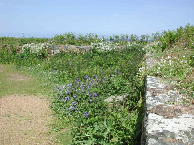 Chemin de ronde Nord reliant la grande batterie de Cosmoguer, la caserne et le fort, Ile aux Moines, les Sept-Iles (Perros-Guirec),
