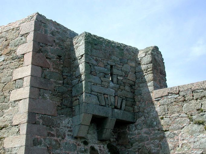 Vue de la bretèche flanquant le pont-levis de la redoute, réduit de l'île aux MoinesImmatriculation