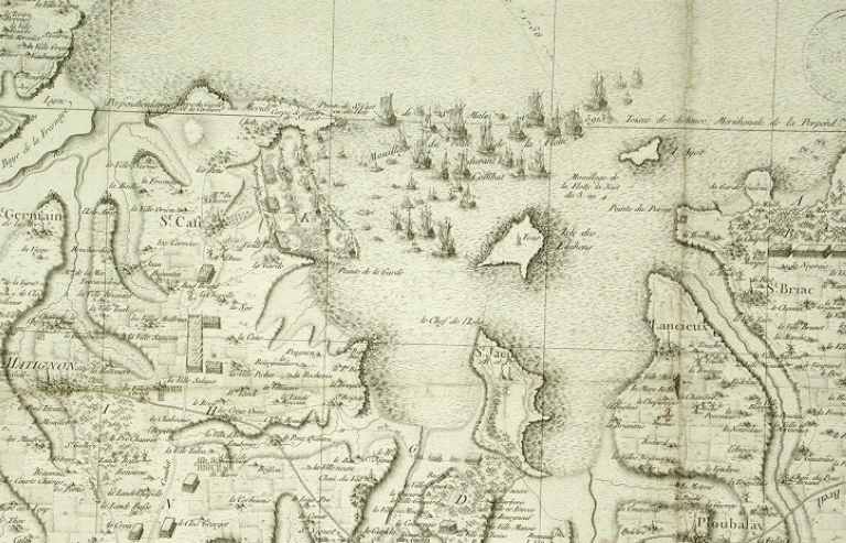 Détail de carte. Bataille de Saint-Cast en 1760 (AD 22).Immatriculation